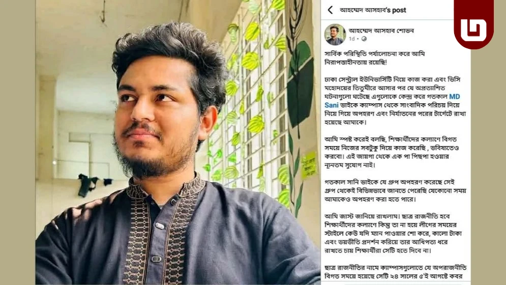 সরকারি তিতুমীর কলেজের এক শিক্ষার্থীকে অপহরণ ও নির্যাতনের ঘটনার পর একই ঘটনার জেরে আরেক শিক্ষার্থী নিজের নিরাপত্তা নিয়ে শঙ্কা প্রকাশ করেছেন। তিনি দাবি করেছেন, অপহরণের সঙ্গে জড়িত গ্রুপ তাকে পরবর্তী টার্গেটে রেখেছে।
