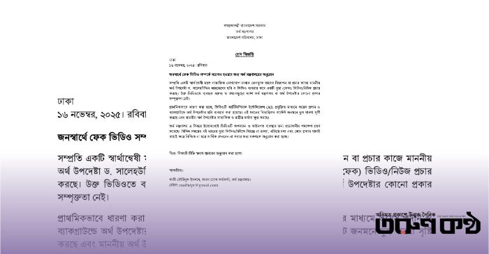 - ভুয়া ভিডিও–ছবি প্রচারে সতর্ক থাকার আহ্বান জানিয়ে অর্থ মন্ত্রনালয