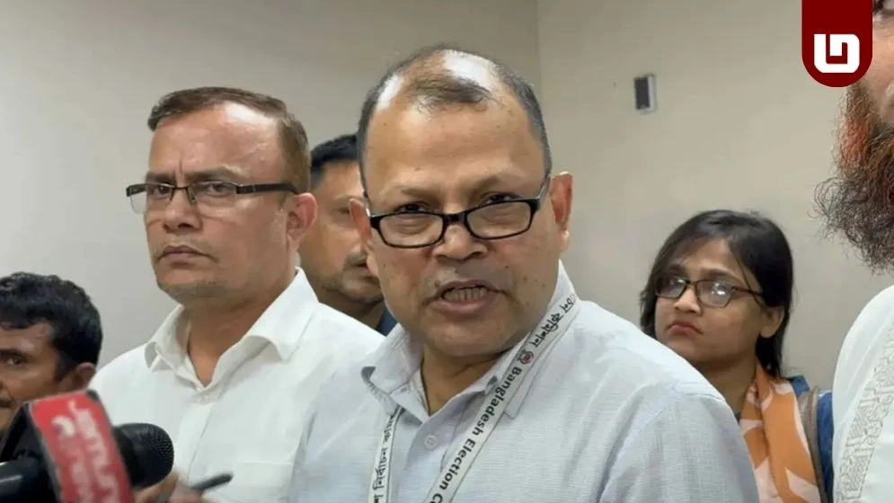 প্রেস ব্রিফিংয়ে রিটার্নিং কর্মকর্তা মো. মঈন উদ্দিন খান।