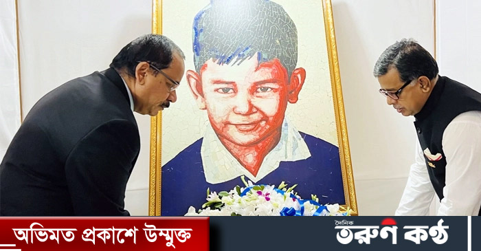 রাসেলের প্রতিকৃতিতে বিমান প্রতিমন্ত্রীর পুষ্পস্তবক অর্পণ