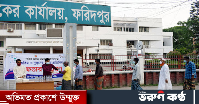 এমনিতেই বৈশ্বিক দুয়োর্গ করোনা ভাইরাস পরিস্থিতিতে ফরিদপুরের সব মানুষই স্বাস্থ্যবিধি মেনে বসতবাড়িতে রয়েছে। তবে অতীব প্রয়োজনে কাউকে না কাউকে বাইরে আসতেই হচ্ছে। বিশেষ করে জরুরী চিকিৎসা সেবার জন্য কারো কারো হাসপাতালে আগমন সহ বিভিন্ন কারনে গন্তব্য তার শহরে। এদের সাথে স্বজনও আসতে হয়। আসতে হয় গাড়ি চালককেও। আবার জরুরী খাদ্য বা জরুরী অন্যান্য সামগ্রীর প্রয়োজনেও কাউকে বাইরে বের হতে হয়। যারা বাইরে বের হয় তাদের সবারই বাড়ি শহরে বা শহরের সন্নিকটে নয়। কারো করো বাড়ি বেশ দূরে। চলমান রমজান মাসে এসব ক্ষেত্রে ভ্রমণরত এতিম ও দুঃস্থ রোজাদারদের জন্য ফরিদপুরের জেলা প্রশাসক অতুল সরকার ইফতারীর আয়োজন করেছেন। প্রতিদিন চলছে এ আয়োজন। জেলা প্রশাসকের কার্যালয়ের সামনে থেকে দেয়া হচ্ছে ইফতারী।