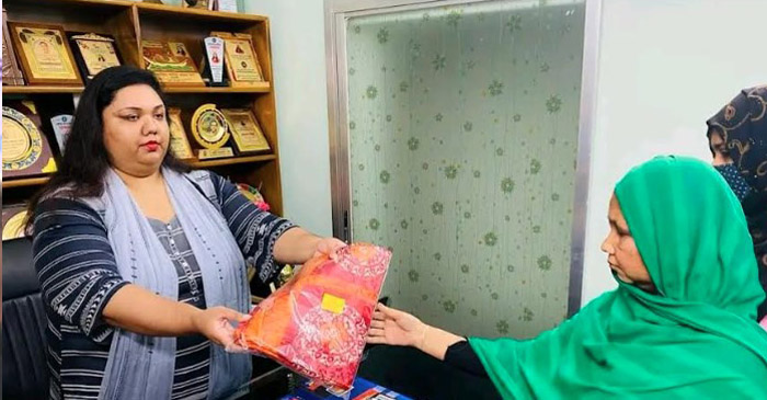 আমার অর্ণা মায়ের দেয়া শাড়ি পড়ে প্রধানমন্ত্রী শেখ হাসিনার জনসভায় যাবো।আমার অর্ণা মা আমাদেরকে যে উপহারগুলো দিয়েছে তা পেয়ে আমরা খুব খুশি।অর্ণা ও তার পরিবারের জন্য দোয়া রইলো।’নতুন শাড়ি পেয়ে এভাবেই আবেগআপ্লুত কন্ঠে ধন্যবাদ জানাচ্ছিলেন তসলিমা খাতুন (৪৯)।