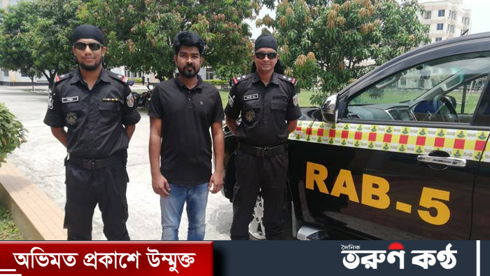 রোববার রাতে র্যাবের একটি দল নগরের সাগরপাড়া গ্রান্ড তোফা হল ভবন থেকে তাকে গ্রেপ্তার করে।