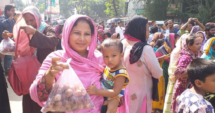 কোলে তার দেড় বছরের শিশুপুত্র। অন্য হাতে এক কেজি পেঁয়াজের ছোট একটি পলিথিনের পোটলা। অথচ চোখে মুখে যেন বিশ্বজয়ের হাসি। কারণ দীর্ঘ দুই ঘণ্টা লাইনে দাঁড়িয়ে এক কেজি পেঁয়াজ কিনতে পেরেছেন শিমু। যদিও ৪৫ টাকায় টিসিবি’র এক কেজি পেঁয়াজ কিনতে রীতিমতো যুদ্ধ করতে হয়েছে এই গৃহিণীকে।