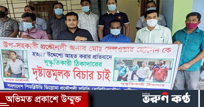 গত ১৭ই আগষ্ট রাজশাহী গণপূর্ত বিভাগের প্রকৌশলীর কার্যালয়ের ভিতরে প্রবেশ করে উপ-সহকারী প্রকৌশলী দেলোয়ার হোসেন কে মারধর করে অসাধু ঠিকাদার লিটন ও তার সহযোগী আতিক। এ সময় তারা অফিস কক্ষে ও ভাংচুর চালায়। এ ঘটনায় অসাধু ঠিকাদার লিটন ও আতিক কে আটক করে রাজশাহী পুলিশ। অসাধু ঠিকাদার লিটন রাজশাহীর পুঠিয়া উপজেলায় এক কোটি টাকা ব্যয়ে ভূমি অফিসের নির্মান কাজ করেছিলেন। ভবন নির্মানের ঢালাইয়ের নিম্ন মানের খোয়া ব্যবহার সহ বিভিন্ন অনিয়ম থাকায় উপ-সহকারী প্রকৌশলী দেলোয়ার হোসেন নির্মান কাজটি বন্ধ রাখতে বলেন। এ ঘটনায় ক্ষিপ্ত হয়ে ঠিকাদার লিটন ও তার সহযোগী আতিক এ সন্ত্রাসী হামলা চালায়।