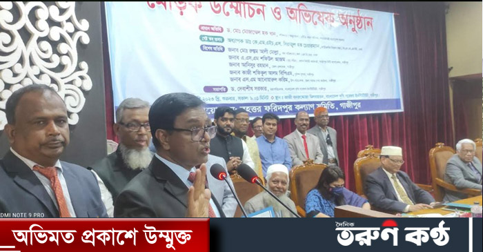 গাজীপুরে বৃহত্তর ফরিদপুর জেলা কল্যাণ সমিতির আয়োজনে শুক্রবার সকাল ১০টায় বাংলাদেশ কৃষি গবেষণা হাজী বদরুদ্দোজা মিলনায়তনে মোড়ক উন্মোচন ও অভিষেক অনুষ্ঠান অনুষ্ঠিত হয়।এসময় প্রধান অতিথি হিসেবে উপস্থিত ছিলেন গণপ্রজাতন্ত্রী বাংলাদেশ সরকারের দুর্নীতি দমন কমিশনের কমিশনার ড.মোঃ মোজাম্মেল হক খান। তিনি বইয়ের মোড়ক উন্মোচন ও বৃহত্তর ফরিদপুর জেলা কল্যাণ সমিতির কার্যকরী কমিটির অভিষেক অনুষ্ঠানে শপথ বাক্য পাঠ করান এবং দিকনির্দেশনা মুলুক বক্তব্য রাখেন।গেষ্ট অব অনার হিসাবে উপস্থিত ছিলেন কার্ডিলোজি বিভাগ (অব.)বি এস এম ইউ অধ্যাপক ডাঃ কে.এম.এইচ.এস সিরাজুল হক চেয়ারম্যান।