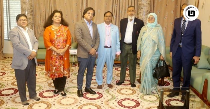উপাচার্য অধ্যাপক ড. হোসেন উদ্দিন শেখরের আমন্ত্রণে আজ রবিবার দুপুর ১২টায় তারা বিশ্ববিদ্যালয় ক্যাম্পাসে আসেন। এসময় অধ্যাপক ড. হোসেন উদ্দিন শেখর, উপ-উপাচার্য অধ্যাপক ড. মো. সোহেল হাসান ও প্রকল্প পরিচালক মোহাম্মদ আশিকুজ্জামান ভূঁইয়া তাদের ফুলেল শুভেচ্ছা জানান।