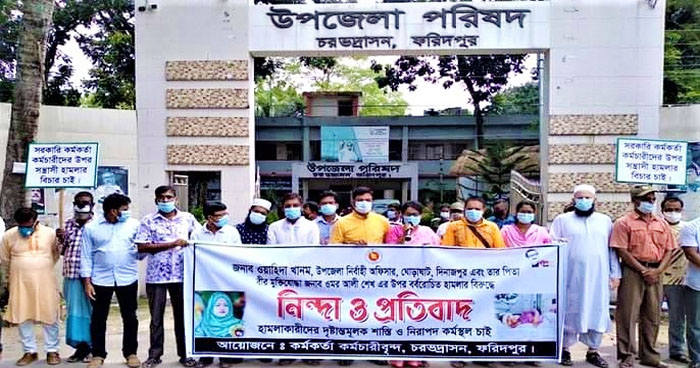 দিনাজপুর জেলার ঘোড়াঘাট উপজেলা নির্বাহী অফিসার ওয়াহিদা খানম ও তার পিতা জাতীর শ্রেষ্ঠ সন্তান বীর মুক্তিযোদ্ধা ওমর আলী শেখের ওপর হামলার প্রতিবাদ ও জড়িতদের দৃষ্টান্তমূলক শাস্তির দাবিতে চরভদ্রাসন উপজেলা পরিষদের সামনে মানববন্ধন ও প্রতিবাদ সমাবেশ অনুষ্ঠিত হয়।