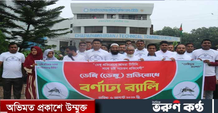 চাঁপাইনবাবগঞ্জে টিটিসি`র উদ্যোগে ডেঙ্গু প্রতিরোধে বর্ণাঢ্য র‌্যাল