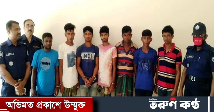 গ্রেফতাররা হলেন- উপজেলার বেলাশহর গ্রামের আবু তাহেরের ছেলে সুমন মিয়া, তেঘরিয়া গ্রামের জাকির হোসেনের ছেলে হোসাইন মিয়া , পশ্চিম বেলাশহর গ্রামের আনোয়ার হোসেনের ছেলে জাহিদ হাসান, একই গ্রামের আজম আলীর ছেলে নাজমুল, মনু মিয়ার ছেলে সোহেল, হাড়িখোলা মাজার বাড়ির আবু শাহীনের ছেলে আবু মুছা, মোহনপুর গ্রামের মোতালেব মিয়ার ছেলে সানাউল্লাহ।