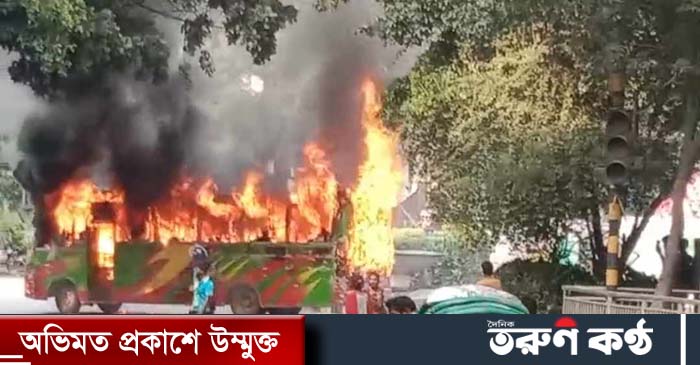 জাতীয় প্রেস ক্লাবের সামনে বাসে আগুন