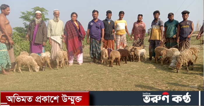 টাঙ্গুয়ার হাওর এলাকায় প্রতিবেশ প্রকল্পের ভেড়া বিতরণ