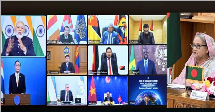 প্রধানমন্ত্রী ভারতের নয়াদিল্লীতে অনুষ্ঠিত ‘ভয়েস অব দ্য সাউথ সামিট ২০২৩’-এর উদ্বোধনী অনুষ্ঠানে (ইন্যাগুরাল লিডারস সেশন) গণভবন থেকে ভার্চুয়ালি যোগদান করে এই ভাষণ দেন।
