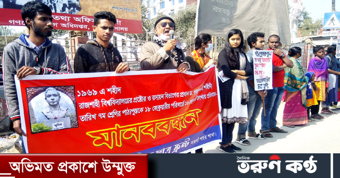 ড. শামসুজ্জোহার শহীদী তারিখ ভুল লেখার প্রতিবাদে নওগাঁয় মানববন্ধন