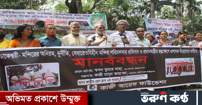 আজ সকালে জাতীয় প্রেসক্লাবের সামনে কাজী আরেফ ফাউন্ডেশনের উদ্যোগে ঢাকেশ্বরী মন্দিরের নানাবিধ অনিয়ম, দুর্নীতি, সেবায়েতবিহীন মন্দির