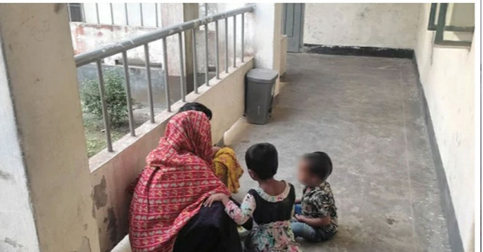 থানায় তিন শিশুকে নিয়ে উপস্থিত সরিফা খাতুন