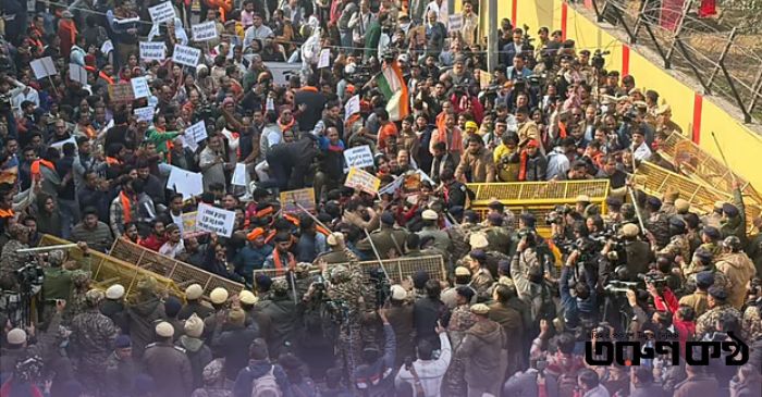 দিল্লিতে বাংলাদেশ হাইকমিশন ঘিরে ভিএইচপির বিক্ষোভ