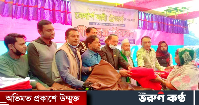 দ. সুনামগঞ্জে হাজি দুদু মিয়ার মাহি ট্রেডার্সের শীতবস্ত্র বিতরণ