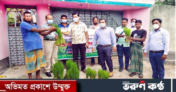নওগাঁয় কৃষকদের মাঝে বিনামূল্যে রোপা আমন ধানের চারা বিতরন