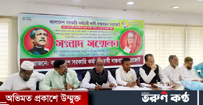 বাংলাদেশ সরকারি কর্মচারী দাবি বাস্তবায়ন মহাজোটের আহবায়ক মো. মিরাজুল ইসলামের সভাপতিত্বে সংবাদ সম্মেলনে বক্তব্য রাখেন- সদস্য সচিব আমজাদ আলী খান, উপদেষ্টা মো. মহিউদ্দিন, যুগ্ম আহবায়ক মতিউর রহমান, কার্যকরী সভাপতি আসকার ইবনে শায়েখ খাজা, মুখপত্র-আব্দুল মান্নান বিশ্বাস প্রমুখ।