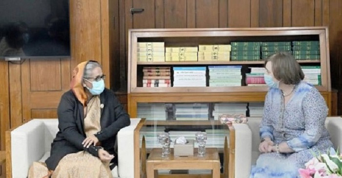 সাক্ষাতকালে শিক্ষামন্ত্রী ডা. দীপু মনি, প্রধানমন্ত্রীর মুখ্য সচিব মো. তোফাজ্জল হোসেন মিয়া, পররাষ্ট্র সচিব মাসুদ বিন মোমেন ও এইউডব্লিউর উপাচার্য ড. রুবানা হক এ সময় উপস্থিত ছিলেন।