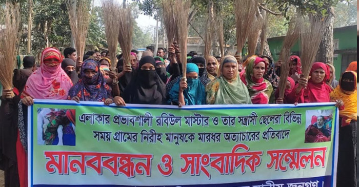১ জানুয়ারি সন্ধ্যায় মুছিদহ গ্রামের কৃষক মো. মাজেদকে তুচ্ছ ঘটনাকে কেন্দ্র করে মারধর করে পা ও মুখের চোয়াল ভেঙ্গে দিয়েছে এর প্রতিপাদে গ্রামবাসী ঐক্যবন্ধ হয়ে এ শান্তিপূর্ন কর্মসূচী পালন করেছে। মানববন্ধনে স্থানীয় জনপ্রতিনিধি, রাজনৈতিক নেতা, এলাকাবাসী ও নির্যাতিত অসহায় কৃষক মাজেদের পরিবারের সদস্যরা অংশ নেন। মানববন্ধনে বক্তব্য রাখেন, পাট্টা ইউপির ৭ নং ওয়ার্ডে ইউপি সদস্য ফিরোজ খান, ইউপি আওয়ামী লীগের প্রচার সম্পাদক রবিউল ইসলাম, নির্যাতিত মাজেদের চাচা আকাম উদ্দিন, স্থানীয় হানিফ আলী খান, হামিদা বেগম, রেহানা বেগম প্রমুখ। বক্তারা বলেন, পাট্টা ইউনিয়ন আওয়ামী লীগের সহ-সভাপতি রবিউল মাস্টার এলাকায় বেশ প্রভাবশালী। তিনি ও তার ছেলেরা এলাকার অসহায় মানুষের ওপর নির্যাতন করেন। স্থানীয় কোনো সালিশ বিচার মানেন না তারা । রবিউল মাস্টার বিগত দিনে বিএনপি করলেও এখন আওয়ামী লীগে অনুপ্রবেশ করে দলের দাপট দেখিয়ে পরিবারের ৪ সদস্যকে সরকারী চাকুরী দিয়েছেন। মানববন্ধনের একটি ব্যানারে দেখাযায় বিএনপির সাবেক এমপি নাসিরুল হক সাবুর সাথে তার একটি হাসউজ্জল ছবি যা স্থানীয়দের মধ্যে ব্যাপক সমালোচনার সৃষ্টি হয়েছে। মানববন্ধনে বক্তরা বলেন রবিউল মাষ্টার কোনদিন আমাদের গ্রামের কারোর কাছেই নৌকায় ভোট চায়নি কোনদিন অথচ সে আওয়ামীলীগ নেতা পরিচয়ে এলাকায় প্রভাব বিস্তার করে চলছে দীর্ঘদিন ধরে। এর কোন প্রতিকার নেই কি! ১ জানুয়ারি সন্ধ্যায় মুছিদহ গ্রামের কৃষক মো. মাজেদ ম-লকে মারধর করে পা ও মুখের চোয়াল ভেঙ্গে দিয়েছেন। ভয়ে মামলা করতে পারছেন না পরিবারটি। এখনও বিভিন্ন ভাবে ভয়ভীতি দেখাচ্ছেন বলে অভিযোগ নির্যাতিত পরিবারটির। ভুক্তভোগী মাজেদের চিকিৎসার খরচ দেওয়ার কথা থাকলেও কোনো তোয়াক্কা করছেন না। অর্থাভাবে বিনা চিকিৎসায় বাড়িতে পরে আছেন কৃষক মাজেদ। এদিকে এলাকাবাসী নিরহ কৃষক মাজেদের চিকিৎসার উদ্দ্যোগ নিচ্ছেন বলে স্থানীয়রা জানিয়েছে।