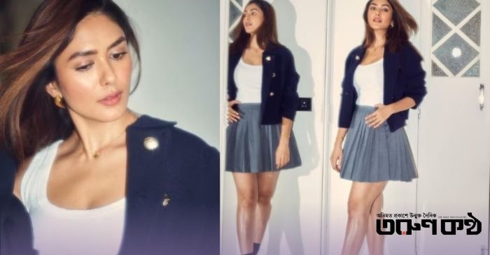 উৎসবে ম্রুণালের পোশাকে দেখা গেছে ফরাসি আভিজাত্য ও আধুনিকতার মেলবন্ধন। তিনি বেছে নিয়েছিলেন জনপ্রিয় ফরাসি ব্র্যান্ড 'সান্দ্রো প্যারিস'-এর একটি নেভি রঙের গোল্ডেন বাটন দেওয়া কার্ডিগান স্টাইল জ্যাকেট। এর নিচে ছিল সাদা ট্যাঙ্ক টপ এবং পরনে ছিল একটি ধূসর রঙের প্লিটেড মিনি স্কার্ট। পুরো সাজের সঙ্গে সামঞ্জস্য রেখে তিনি নিয়েছিলেন 'অলয়া' ব্র্যান্ডের একটি বারগান্ডি রঙের ছোট হ্যান্ডব্যাগ। পায়ের কালো অ্যাঙ্কল বুট তাঁর লুকে যোগ করেছিল একটি স্মার্ট ফিনিশ।