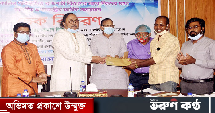 করোনাকালে পরিস্থিতি মোকাবেলায় সরকারি প্রনোদনা প্রদানের অংশ হিসেবে রাজশাহী অঞ্চলের ২০০ সাংবাদিকদের মাঝে প্রধানমন্ত্রীর আর্থিক সহায়তার চেক বিতরণ করা হয়েছে। শুক্রবার দুপুরে রাজশাহী জেলা প্রশাসকের সম্মেলন কক্ষে বাংলাদেশ সাংবাদিক কল্যাণ ট্রাস্ট আয়োজিত অনুষ্ঠানে প্রধান অতিথি হিসেবে উপস্থিত থেকে প্রধানমন্ত্রীর সহায়তার চেক বিতরণ করেন রাজশাহী সিটি কর্পোরেশনের মেয়র এএইচএম খায়রুজ্জামান লিটন।