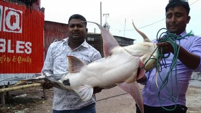 বৃহস্পতিবার ভোরে পাবনার জেলে জয়নাল প্রামাণিকের জালে মাছটি ধরা পড়ে।