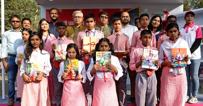 এরই অংশ হিসেবে শুক্রবার বিকেলে মেলায় প্রথম আলো ট্রাস্ট পরিচালিত নওগাঁ জেলার নিয়ামতপুর উপজেলার গুড়িহারী-কামদেবপুর আলোর পাঠশালা, রাজশাহী মহানগরীর রাজশাহী আলোর পাঠশালা এবং গোদাগাড়ী উপজেলার বাবুডাইং আলোর পাঠশালা থেকে আসা এসব সুবিধাবঞ্চিত শিশুদের হাতে বইগুলো তুলে দেন প্রথম আলোর ব্যবস্থাপনা সম্পাদক ও কথা সাহিত্যিক আনিসুল হক এবং বিকাশের হেড অব করপোরেট কমিউনিকেশন্স শামসুদ্দিন হায়দার ডালিম।
