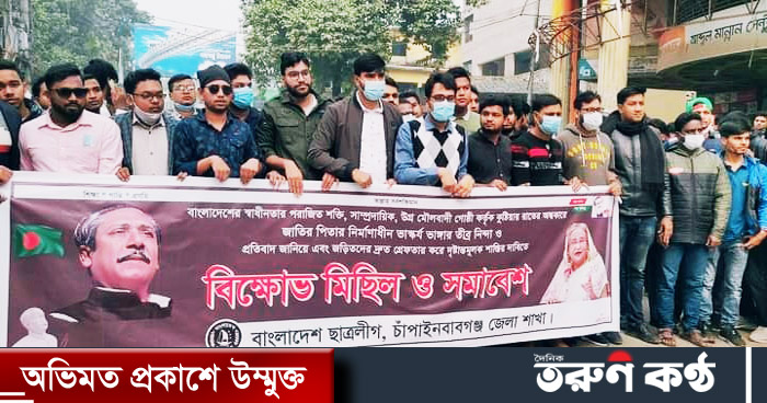 বঙ্গবন্ধুর ভাস্কর্য ভাঙার প্রতিবাদে চাঁপাইনবাবগঞ্জে বিক্ষোভ মিছিল