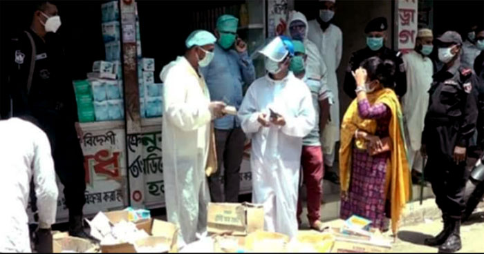 বরিশালে ৪টি ফার্মেসি থেকে ২লাখ টাকার নকল ওষুধ ও স্যানিটাইজ উদ্ধার