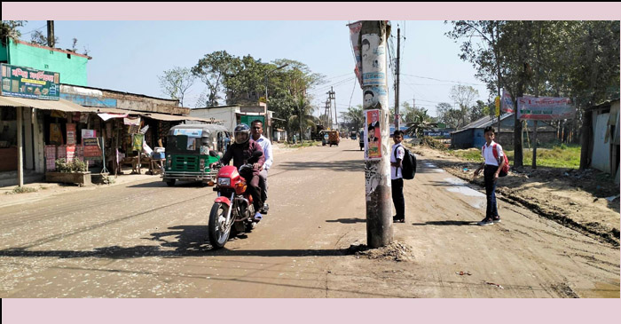 বিদ্যুতের খুঁটি রেখে চলছে সড়ক প্রশস্ত করার কাজ