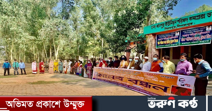 দিনাজপুরের বিরামপুরে আন্তর্জাতিক নারী নির্যাতন প্রতিরোধ পক্ষ (২৫ নভেম্বর থেকে ১০ ডিসেম্বর) যথাযোগ্য মর্যাদায় উদযাপন উপলক্ষে উপজেলা প্রশাসন ও উপজেলা মহিলা বিষয়ক অফিসারের কার্যালয়ের আয়োজনে এবং ওয়ার্ল্ড ভিশন বাংলাদেশ, বিরামপুর এপি'র সহযোগীতায় উপজেলার রতনপুরে অবস্থিত ৩নং খানপুর ইউনিয়ন পরিষদ কার্যালয় প্রাঙ্গণে বুধবার (২৫ নভেম্বর) বেলা সাড়ে ১১টায় মানবনন্ধন ও নারী নির্যাতন প্রতিরোধে প্রচারনামূলক সভা অনুষ্ঠিত হয়।