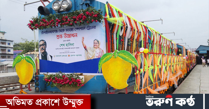 চাঁপাইনবাবগঞ্জ ও রাজশাহী থেকে কম খরচে ঢাকায় আম পরিবহনের জন্য ম্যাঙ্গো স্পেশাল ট্রেন চালু হচ্ছে আগামী বুধবার (৭ জুন) থেকে। বুধবার বিকেলে চাঁপাইনবাবগঞ্জ রেলওয়ে স্টেশন থেকে বিশেষ এই ট্রেনের কার্যক্রম উদ্বোধন করা হবে।
