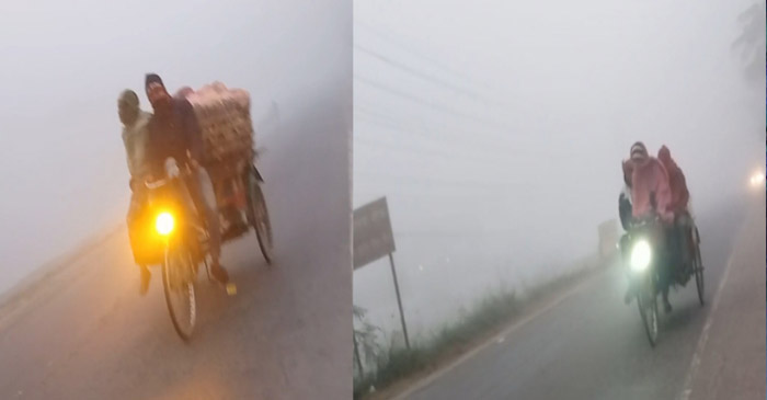 সুমন নামের আর এক রিকশাচলক বলেন, পেটের দায়ে এই হাঁড় কাঁপানো শীত আর কুয়াশার মধ্যে রিকশা নিয়ে আসছি। চারমাথায় বসে আছি, লোকজন নাই।