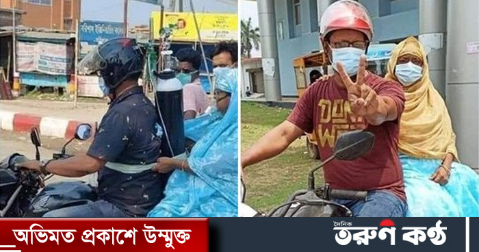 এর আগে হাসপাতালের করোনা ওয়ার্ডের সামনে মাকে নিয়ে হাত নাড়িয়ে বিজয় চিহৃ দেখান। গত ১৭ এপ্রিল পিঠে অক্সিজেন সিলিন্ডার বেঁধে মোটরসাইকেলে করে মাকে হাসপাতালে নিয়ে যান তিনি।