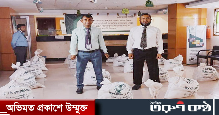 ব্যাংকের ম্যানেজার জনাব আবুল হাসান এর সংক্ষিপ্ত আলোচনা শেষে করোনায় ক্ষতিগ্রস্থ অসহায় দরিদ্রদের মাঝে ত্রাণ সামগ্রী বিতরণ করা হয়। ত্রাণ সামগ্রীর মধ্যে, চাল১০ কেজি, সয়াবিনতেল ২ কেজি, ডাল ২ কেজি, আলু ৫ কেজি, পিয়াজ ৩ কেজি, লবন ১ কেজি ,১০০ টাকার প্যাকেজিং , মাক্স ১০ টি, সাবান ৪টি প্রভৃতি।