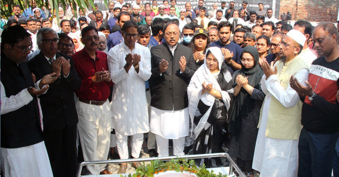 শ্রদ্ধা নিবেদনের পর দোয়া ও মোনাজাত করা হয়। দোয়া ও মোনাজাত পরিচালনা করেন রাজশাহী বিশ্ববিদ্যালয়ের ইসলামিক স্টাডিজ বিভাগের সহযোগী অধ্যাপক ড. মাওলানা মুহা. বারকুল্লাহ বিন দুরুল হুদা।