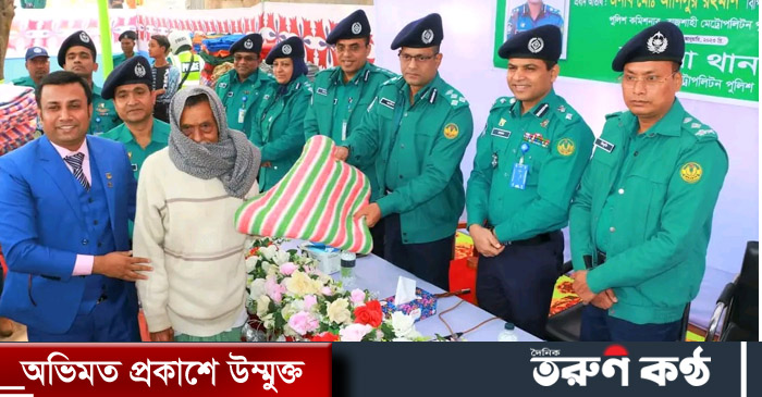 রাজশাহী মহানগরীর চন্দ্রিমা থানা এলাকায় অসহায় শীতার্তদের মাঝে শীতবস্ত্র বিতরণ করেন আরএমপি পুলিশ কমিশনার।