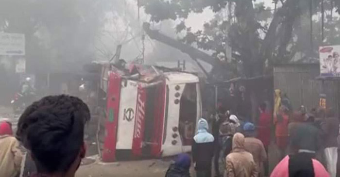 রেলক্রসিংয়ে বাস-ট্রেন সংঘর্ষে নিহত ১, আহত ২৭