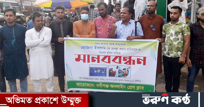 রোজিনাকে হেনস্থা ও গ্রেপ্তারের প্রতিবাদে হবিগঞ্জে মানববন্ধন
