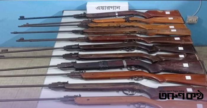তল্লাশিকালে ঝোপের মধ্যে থাকা দুটি প্লাস্টিকের বস্তায় মোড়ানো মোট ১১টি এয়ারগান উদ্ধার করা হয়। তবে এ ঘটনায় তাৎক্ষণিকভাবে কাউকে শনাক্ত বা আটক করা যায়নি।
