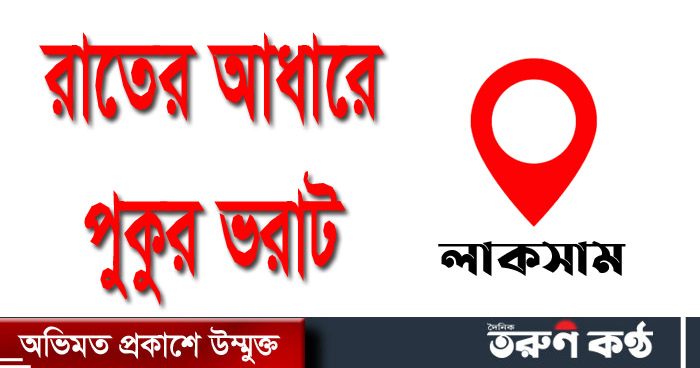 লাকসাম পৌর এলাকার পশ্চিমগাঁও সাহা পাড়ায় রাতের আধারে পুকুর ভরাট চলছে। পুকুর ভরাট নিষিদ্ধ তবুও প্রশাসনকে ম্যানেজ করে পুকুর ভরাটের কাজ চলছে। গত এক বছরে লাকসামে অর্ধ-শতাধিক পুকুর ভরাট করা হয়েছে। কোনো ভাবেই থামছে না এ পুকুর ভরাট। প্রশাসনের পক্ষ থেকে পুকুর ভরাট বন্ধ করার জন্য প্রয়োজনীয় কোন পদক্ষেপ গ্রহণ করা হয়নি। এক সময়ের অনিল সাহা ও তার ভাইয়েদের মালিকানাধিন পৌর এলাকার পশ্চিমগাঁও সাহা পাড়ায় শতবর্শী এই পুকুর। আশেপাশের লোকজন এই পুকুরে গোসল ও আসবাব ধোঁয়ার কাজে ব্যবহার করত। এই পুকুরটি ১৮ ডিং। সুমন সহ ৪ জন এই পুকুরটি ক্রয় করেন। গত বৃহস্পতিবার ও শুক্রবার রাত দশটার পর ট্রাকে করে হাজীগঞ্জ থেকে বালু এনে পুকুরটি ভরাট করে। দিনের বেলায় বেড়া দিয়ে ঘেরাও করে রাখে। এলাকার কয়েকজন নাম প্রকাশ না করার শর্তে বলেন বৃহস্পতিবার ও শুক্রবার রাতে সরকারি অফিস বন্ধ থাকে। এ সুযোগে রাতের বেলায় ট্রাকে করে বালু দিয়ে ভর্তি করে পুকুরটি। স্থানীয়রা জানান, স্থানীয় প্রশাসনকে ম্যানেজ করে এই পুকুর ভরাট করছে। লাকসামে গত এক বৎসরে প্রায় অর্ধশতাধীক পুকুর ভরাট হয়েছে। কোন ভাবেই বন্ধ করা যাচ্ছে না পুকুর ভরাট। সরকারি ভাবে পুকুর ভরাট নিষিদ্ধ। ১৯৯৫ এর ৬ এ (ঙ) ধারার বলা হয়েছে জলদ্বারা হিসাবে চিহ্নিত জায়গা ভরাট বা অন্য কোন ভাবে শ্রেণি বিন্যাস পরিবর্তন করা যাবে না। পরিবেশ আইন অনুযায়ী পুকুর, ডোবা-জলাশয় ভরাট করা নিষিদ্ধ। কোন পুকুর ভরাট করতে হলে প্রধান মন্ত্রীর কার্যালয়ের অনুমতি নিতে হবে। কিন্তু এই আইনকে তোয়াক্কা না করে প্রশাসনকে ম্যানেজের মাধ্যমে পুকুর ভরাট চলছে। এই ব্যাপারে জানতে চাইলে, সহকারি কমিশনার (ভূমি) উজালা রানী চাকমা বলেন, ব্যক্তি মালিকানা পুকুর হলে আমি কোন ব্যবস্থা নিতে পারবো না। খাস পুকুর হলে ব্যবস্থা নেওয়া যেতে পারে।
