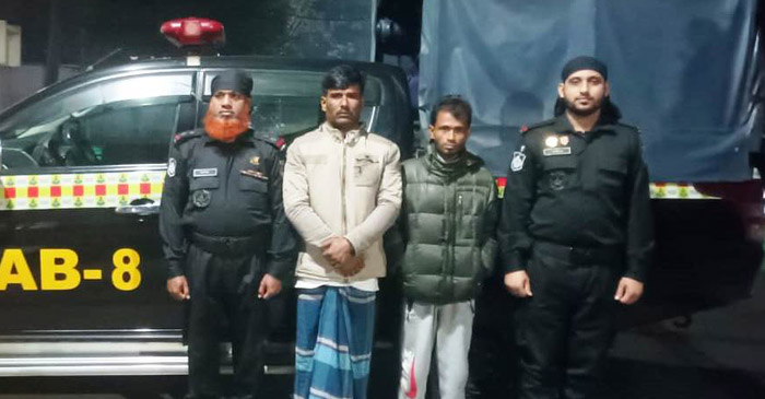 র্যাব-৮, সিপিসি-৩, মাদারীপুর ক্যাম্পের একটি বিশেষ আভিযানিক দল কোম্পানী কমান্ডার লেঃ কমান্ডার কে এম শাইখ আকতার এর নেতৃত্বে অদ্য ১৫ ডিসেম্বর ২০২২ইং তারিখ রাত ১২.২০ ঘটিকার সময় শরীয়তপুর জেলার সখিপুর থানাধীন বাহাদুর মুন্সিকান্দি সাকিনাস্থ এলাকায় নিয়মিত টহল ডিউটি করাকালে অভিযান পরিচালনা করে আসামী ১। শহিদউল্যা @ শহিদ সরদার(৪০), পিতা-মৃত হামিদ সরদার, মাতাÑশরিয়তুন নেছা, ২। মোঃ নাজমুল তালুকদার(৩২), পিতা-মৃত নূর মোহাম্মাদ, মাতা-নূর বানু বেগম, উভয় সাং-বাহাদুর মুন্সিকান্দি, থানা-সখিপুর, জেলা-শরিয়তপুরদ্বয়দেরকে গাঁজাসহ হাতে নাতে আটক করে। এসময় আটককৃত আসামীদের নিকট হতে নেশা জাতীয় মাদক ১০ (দশ) কেজি ৫০০ (পাঁচশত) গ্রাম গাঁজা ও মাদক ক্রয় বিক্রয় কাজে ব্যবহৃত ০২টি মোবাইল এবং ০২টি সীমকার্ড উদ্ধার করা হয়। আটককৃত আসামীদেরকে জিজ্ঞাসাবাদে জানা যায় যে, ধৃত আসামীগণ পেশাদার মাদক ব্যবসায়ী এবং তারা দীর্ঘদিন শরীয়তপুর জেলার সখিপুর থানাসহ বিভিন্ন এলাকায় গাঁজাসহ বিভিন্ন ধরনের অবৈধ মাদকদ্রব্য ক্রয়-বিক্রয় কার্যক্রম চালিয়ে আসছে। পরবর্তীতে আইনানুগ ব্যবস্থা গ্রহণের জন্য ধৃত আসামীদ্বয়কে সংশ্লিষ্ট থানায় হস্তান্তর করা হয় এবং মাদক আইনে মামলা দায়ের করা হয়।