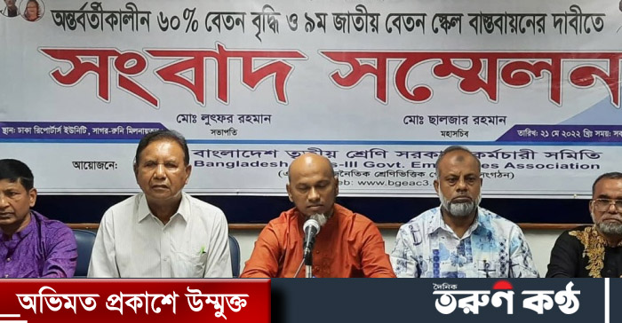 স্টাফ রিপোর্টার: নতুন জাতীয় বেতন স্কেল প্রদান না করা পর্যন্ত সরকারি কর্মচারিদের অন্তবর্তীকালীন সময়ের জন্য ৬০% বেতন বৃদ্ধির দাবী জানিয়েছে বাংলাদেশ তৃতীয় শ্রেণি সরকারি কর্মচারী সমিতি। আজ শনিবার ঢাকা রিপোটার্স ইউনিটির সাগর-রুনি মিলনায়তনে সমিতির এক সংবাদ সম্মেলনে এ দাবী জানানো হয়। সংবাদ সম্মেলনে লিখিত বক্তব্যে বলা হয় ২০১৫ সালে সর্বশেষ জাতীয় বেতনস্কেল প্রদানের পর বিগত ৭(সাত) বছরে গ্যাস, বিদ্যুৎ, পানি, চিকিৎসা ব্যয়সহ নিত্য প্রয়োজনীয় দ্রব্য সামগ্রীর মূল্য প্রতিনিয়ত অস্বাভাবিকভাবে বৃদ্ধি পাওয়ায় সীমিত আয়ের সরকারি কর্মচারীদের জীবন যাপন কষ্টসাধ্য হয়ে পড়েছে। স্বাভাবিক জীবনযাপনের জন্য নতুন জাতীয় বেতন স্কেল প্রদান অত্যাবশ্যক। সম্মেলনে নেতৃবৃন্দ নতুন বেতন স্কেল প্রদান না করা পর্যন্ত অসহায় ও হতাশাগ্রস্থ সরকারি কর্মচারীদেরকে অন্তবর্ন্তীকালীন সময়ের জন্য ৬০% বেতন বৃদ্ধি করাসহ চিকিৎসা ভাতা ৪,০০০/- টাকা প্রদান এবং প্রজাতন্ত্রের কর্মচারীদের মধ্যে বৈষম্য নিরসনকল্পে বাংলাদেশ সচিবালয়ের ন্যায় সচিবালয় বহির্ভূত অধিদপ্তর, পরিদপ্তর, দপ্তর- প্রতিষ্ঠান, সংস্থা, বিভাগীয় কমিশনার, জেলা প্রশাসকের কার্যালয়ে কর্মরত, প্রধান সহকারী, উচ্চমান সহকারী, স্টেনোগ্রাফার, কম্পিউটার অপারেটর, স্টোর কিপারসহ সমমানের সমমর্যাদার কর্মচারীদের পদ-পদবী প্রশাসনিক কর্মকর্তা, ব্যক্তিগত কর্মকর্তা, প্রযোজ্য ক্ষেত্রে স্বপদে দ্বিতীয় শ্রেণির পদমর্যাদা ও বেতনস্কেল প্রদান, ডিপ্লোমা নার্সদের ন্যায় সমশিক্ষাগত যোগ্যতাসম্পন্ন ডিপ্লোমা হেলথ টেকনোলজিস্ট, ফার্মাসিস্ট ও সমশিক্ষাগত যোগ্যতাধারীদের দ্বিতীয় শ্রেণির পদমর্যাদাসহ বেতনস্কেল প্রদানের দাবী জানানো হয়। নেতৃবৃন্দ তাদের দাবী বাস্তবায়নে আগামী ২৪ মে, ২০২২ খ্রি. মাননীয় প্রধানমন্ত্রী, গণপ্রজাতন্ত্রী বাংলাদেশ সরকার সমীপে দাবী সম্বলিত স্মারকলিপি প্রদান, আগামী ২৬ মে, হতে ০৯ জুন, ২০২২ খ্রি. পর্যন্ত রাজধানীর বিভিন্ন দপ্তর/প্রতিষ্ঠান, প্রশাসনিক বিভাগ ও জেলাসমূহে দাবীর সমর্থনে কর্মচারী সমাবেশ এবং দাবী বাস্তবায়ন না হলে আগামী ১১ জুন, ২০২২ খ্রি. জাতীয় প্রেস ক্লাবের সামনে মানববন্ধন কর্মসূচি পালন করা হবে। সংবাদ সম্মেলনে লিখিত বক্তব্য পাঠ করেন সমিতির মহাসচিব মোঃ ছালজার রহমান।