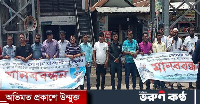 সাংবাদিক হত্যার প্রতিবাদে গাজীপুরে সাংবাদিকদের মানববন্ধন