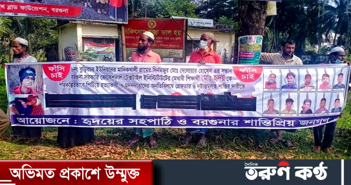 বরগুনায় কিশোর হৃদয় হত্যার ন্যায় বিচার পেতে দ্বারে দ্বারে ঘুরছেন হৃদয়ের পরিবার। রিফাত শরীফ হত্যা মামলার শিশু আসামিদের রায়ের দিন আদালত চত্ত্বরের কাছে একটি মানবন্ধন করে হৃদয়ের পরিবার ও স্বজনরা। এসময় তারা রিফাত হত্যার রায়ের মতো হৃদয় হত্যাকাণ্ডে জড়িতদেরও ফাঁসির দাবি জানান।