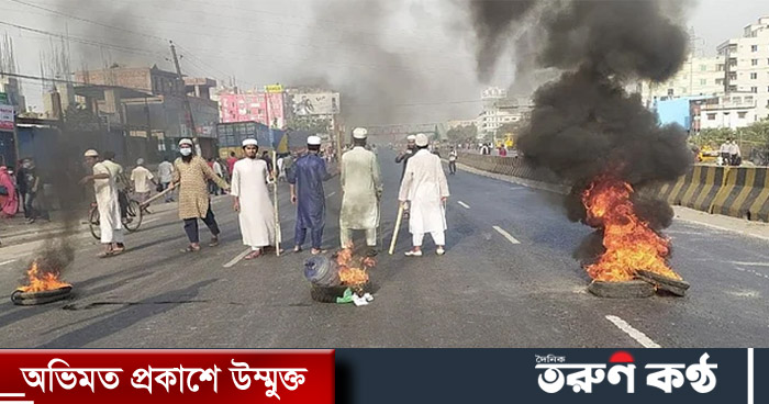 এর আগে সকালে হেফাজতের নেতা-কর্মীরা ঢাকা-চট্টগ্রাম মহাসড়ক অবরোধ করেন। তারা সড়কের কয়েকটি স্থানে টায়ার, গাছের গুঁড়ি ও বাঁশে আগুন জ্বালিয়ে বিক্ষোভ করেছেন। সকাল সোয়া ১০টার দিকে হরতাল চলাকালে সিদ্ধিরগঞ্জের মৌচাক এলাকায় পুলিশ পরিস্থিতি সামলাতে কাঁদানে গ্যাসের শেল ও শটগানের গুলি ছুঁড়েছে।