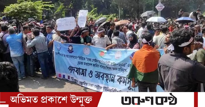 এসময় তারা ‘অধ্যাদেশ নিয়ে টালবাহানা, চলবে না চলবে না’, ‘লেগেছে রে লেগেছে, রক্তে আগুন লেগেছে’, ‘শিক্ষা নিয়ে বাণিজ্য চলবে না চলবে না’ স্লোগান দেন।